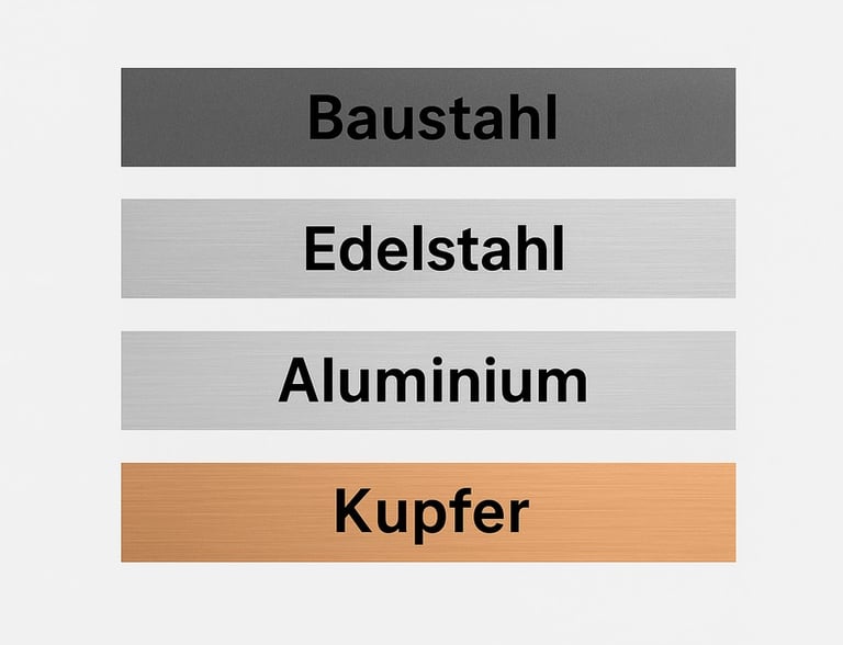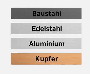 Wir schneiden Stahl, Edelstahl, Aluminium, Kupfer und Messing. Weitere Metalle oder Sonderwerkstoffe prüfen wir gern individuell.
